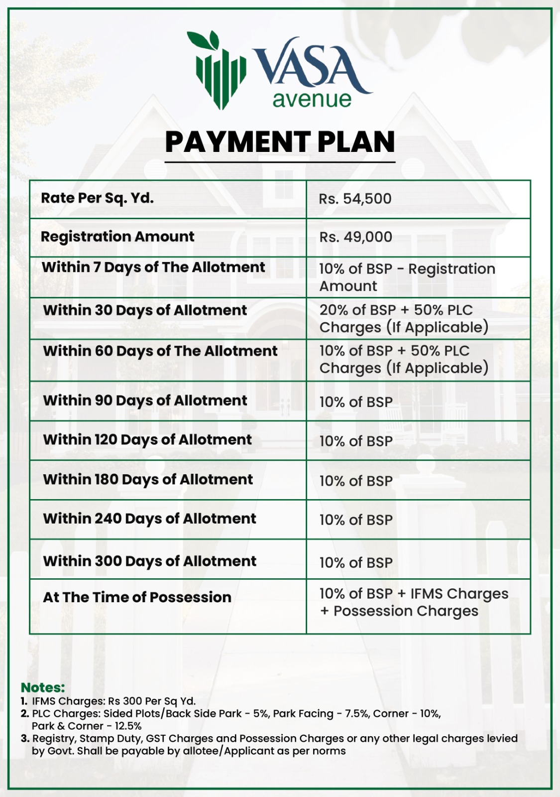 IFMS CHARGES | Rs 300 Per Sq Yd |